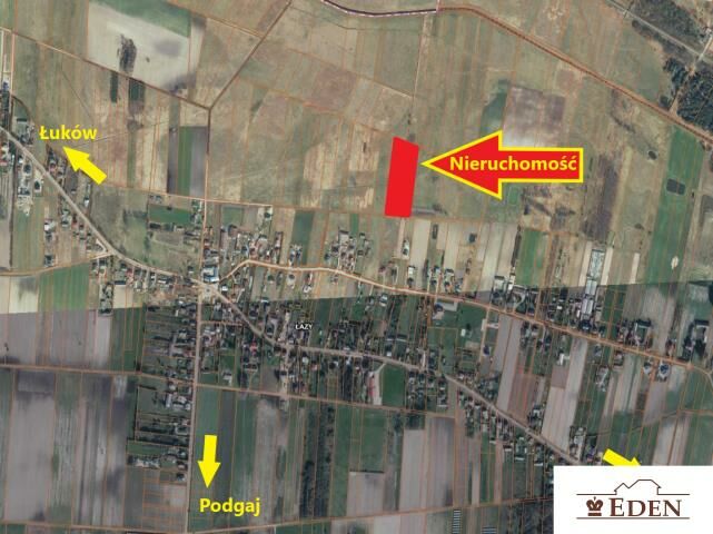 Działka rekreacyjno-rolna o powierzchni 46 arów w Łazach pod Łukowem.Nieruchomość (nr ewid. 131) o wymiarach ok. 25m x 180m z dostępem do polnej drogi gminnej z dwóch stron działki.